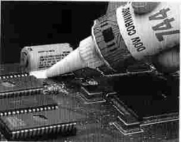 Silikonové lepidlo, tmel Dow Corning DC 744, se vytvrzuje při normální teplotě do formy houževnaté, pružné pryže, nestékavý, univerzálně použitelný pro montáž elektronických sestav, upevňování větších součástek jako jsou kondenzátory, ferity,konektory na desky plošných spojů, pro sestavy obsahují součástky citlivé ke korozi a vibracím, výborná přilnavost k mnoha kovům, keramice, sklu, laminátům a plastům, neuvolňuje kyselinu octovou , NEKOROZIVNÍ