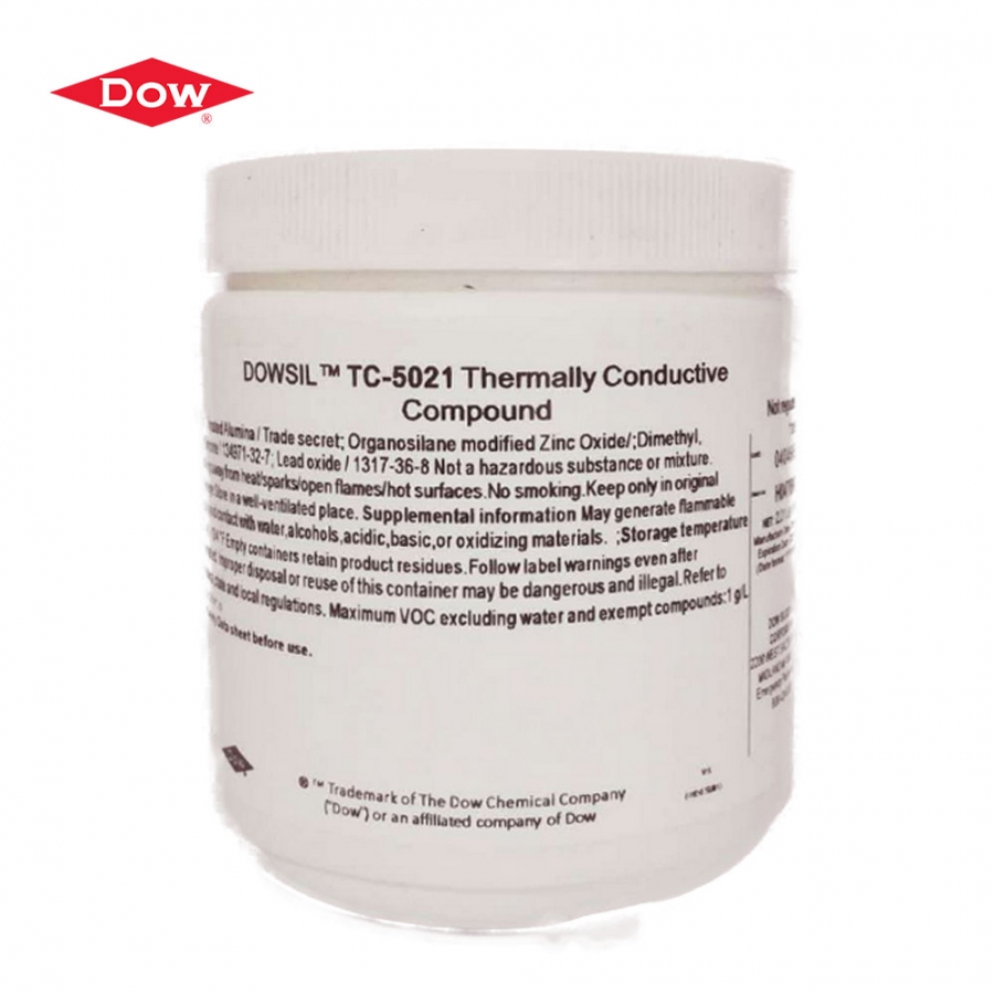 Dow Corning TC 5021 je styková vazelína obsahující velké množství tepelně vodivých oxidů kovů. Tato kombinace zajišťuje vysokou tepelnou vodivost, nízké tekutost a vysokou tepelnou stabilitu. Zlepšuje přenos tepla z elektrických/elektronických zařízení na chladič a tím zvyšuje celkovou účinnost přístroje.
